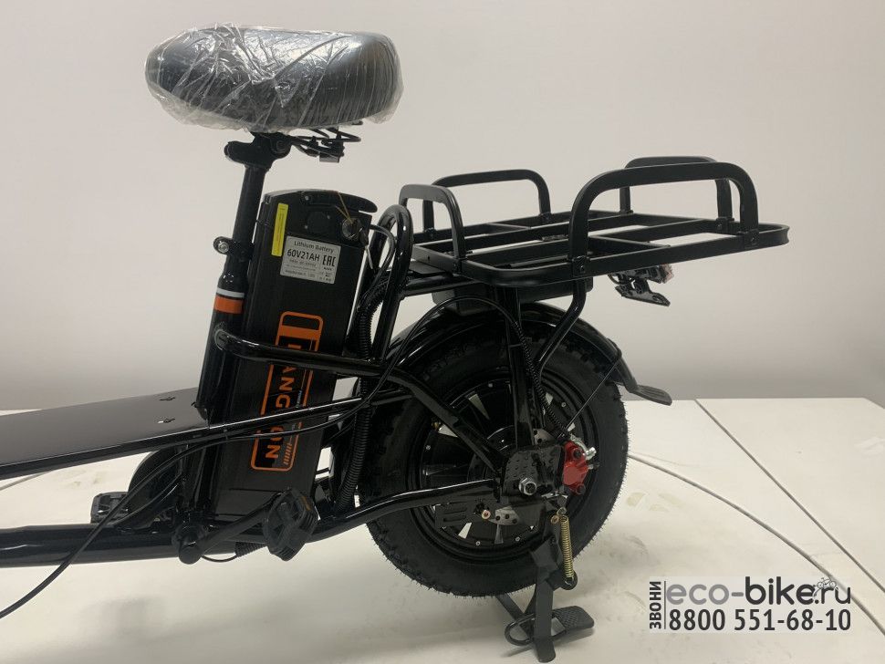 Главное преимущество Monster — это увеличенная ёмкость аккумулятора: 30 Ач, благодаря которой пробег достигает до 80 км на одном заряде. Это особенно важно для курьеров и служб доставки: вы сможете работать весь день без подзарядки. Аккумулятор быстросъёмный и выполнен по надёжной Li-ion технологии.